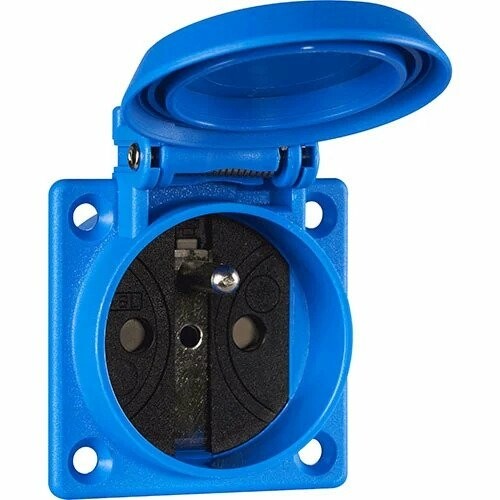 inbouwcontactdoos met penaarde Belgie en klapdeksel 16A 230V blauw