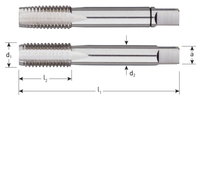 HSS handtappensets, DIN 2181, metrisch fijn, sets à 2 stuks.