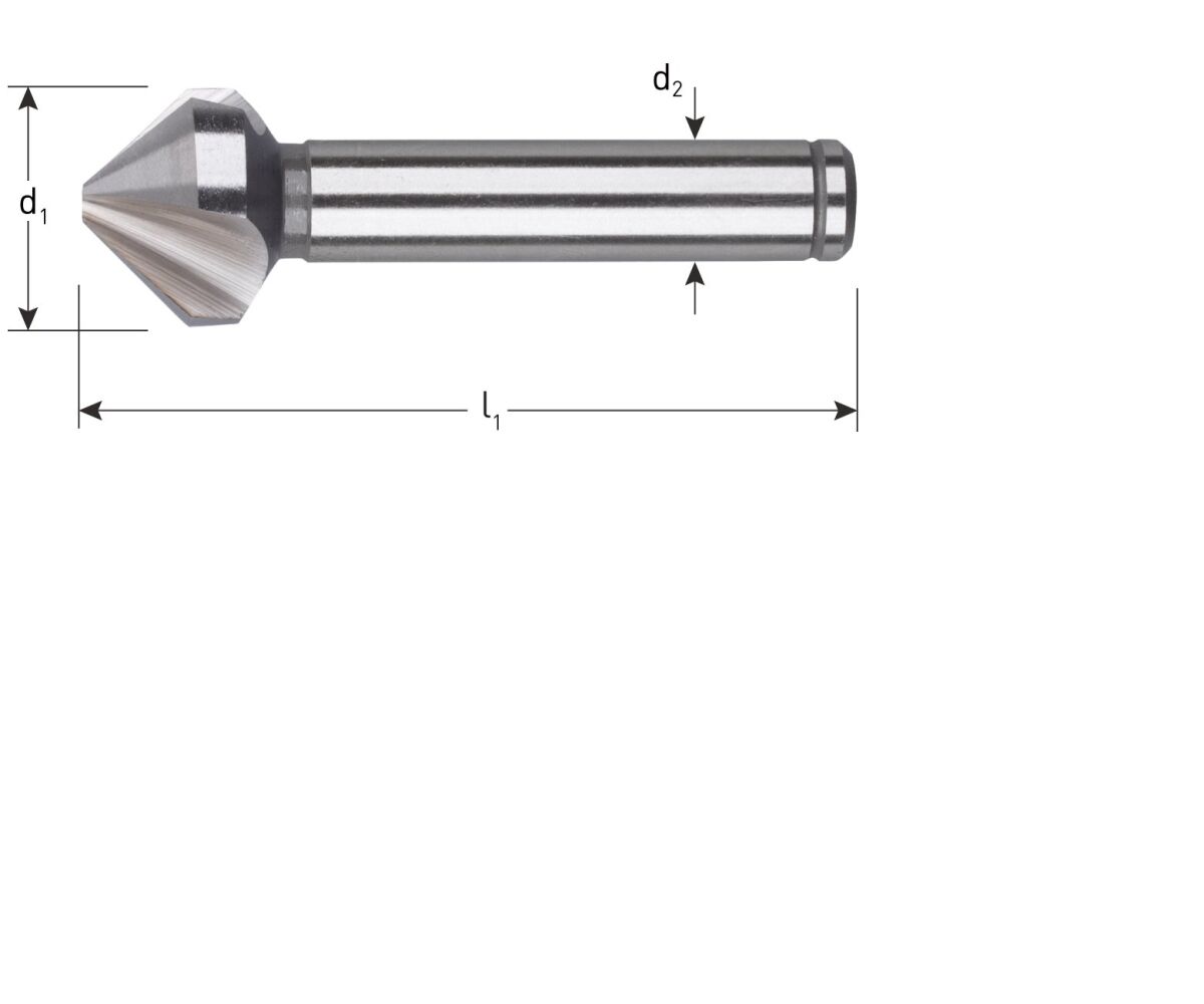 HSS-E verzinkfrees, INOX, DIN 335-C, cilindrische schacht, 90°, 3 snijkanten, CBN-geslepen.