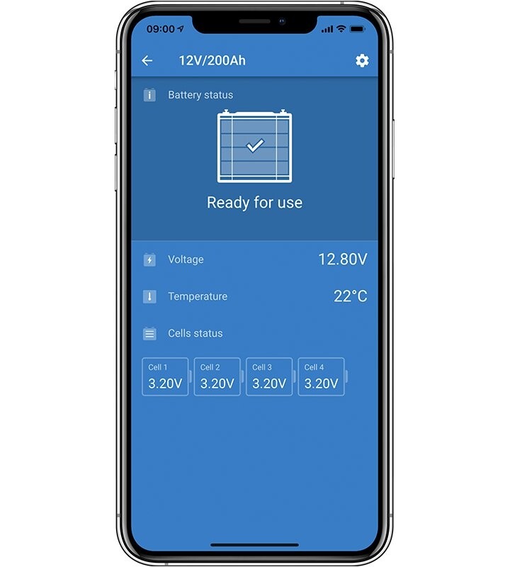 Met Bluetooth kunnen cel spanningen, temperatuur en alarmstatus worden gecontroleerd.