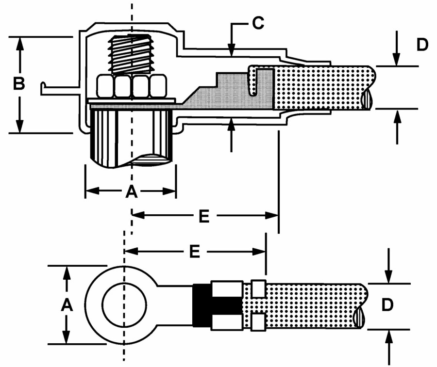 E = lengte van de isolator richting kabel