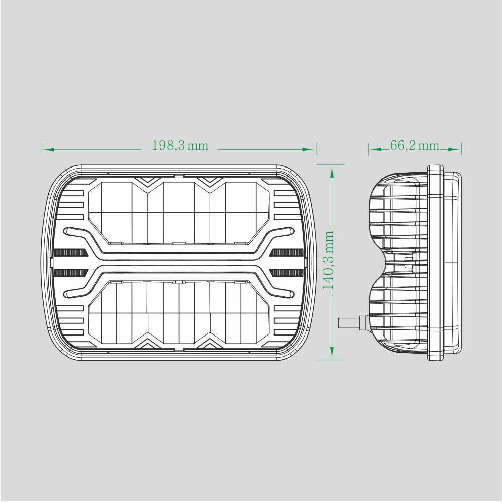 Rechthoekige led verstraler inclusief dagrijverlichting, dimlicht en grootlicht.