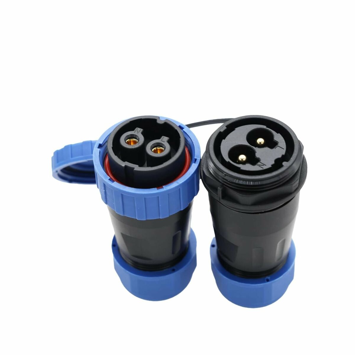 De IP68 connector LD28-2P-Docking 45A is een robuuste en betrouwbare connector, speciaal ontworpen voor toepassingen waar een veilige en waterdichte verbinding vereist is. Dankzij de IP68-beschermingsgraad is deze connector volledig stof- en waterdicht, waardoor hij perfect geschikt is voor gebruik in veeleisende buiten- of industriële omgevingen.