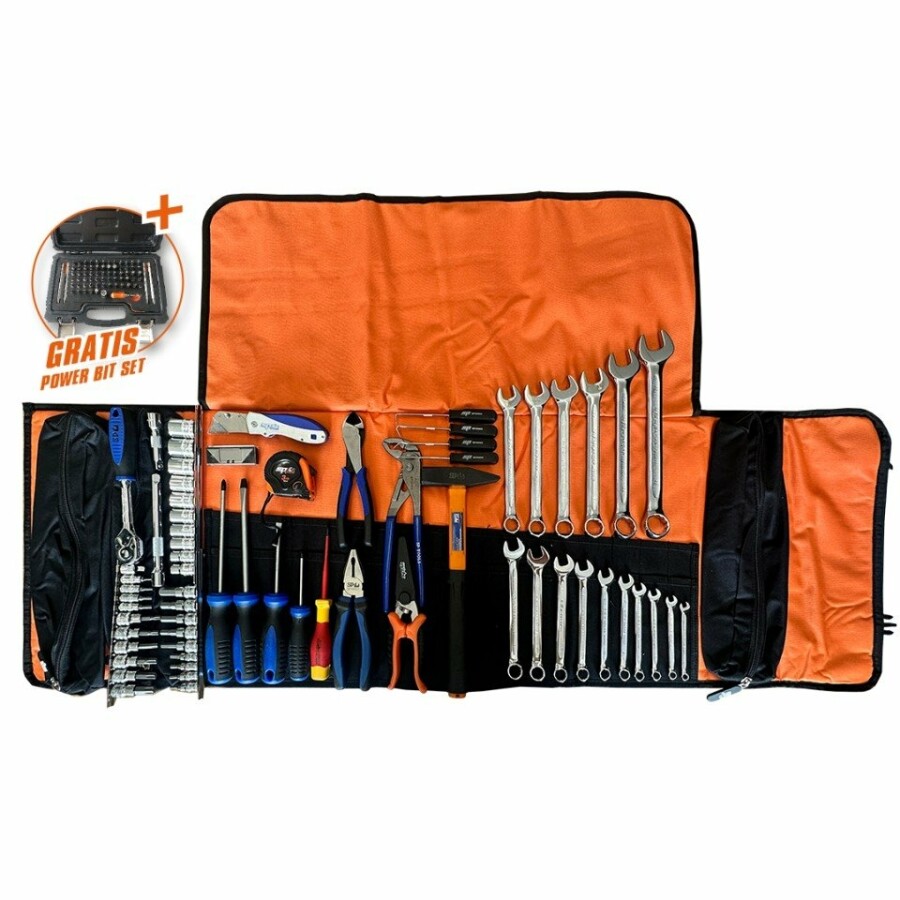Deze 66-delige Portable Toolkit in stevige toolroll is de ideale alles-in-één oplossing voor monteurs, technici, klussers en iedereen die onderweg volledig uitgerust wil zijn. De set bevat een breed assortiment handgereedschap, overzichtelijk opgeborgen in een duurzame en compacte oprolbare tas. Perfect voor servicevoertuigen, werkplaatsen, garages en mobiel onderhoud.
