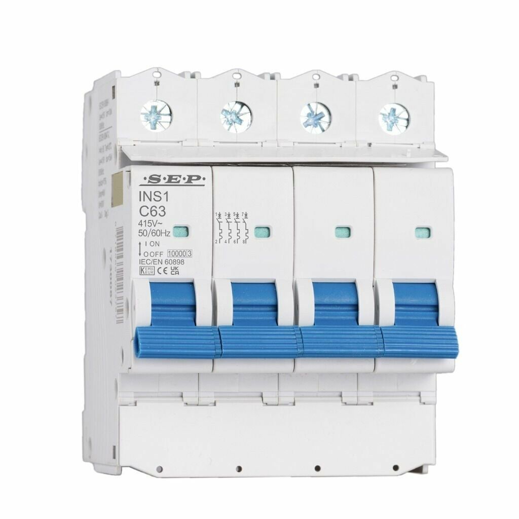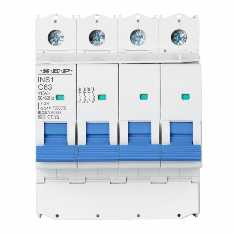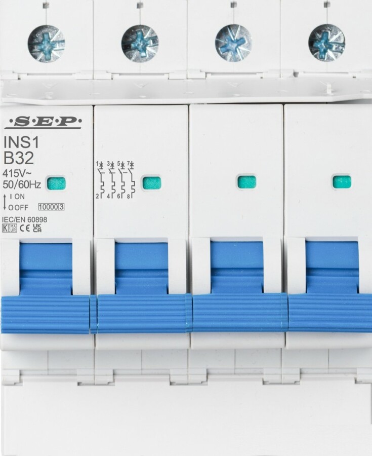 De SEP INS1-4B32 is een hoogwaardige installatieautomaat (MCB) ontworpen voor betrouwbare beveiliging van eindgroepen tegen overbelasting en kortsluiting. Deze uitvoering is 4-polig, met B-karakteristiek en een nominale stroom van 32A.